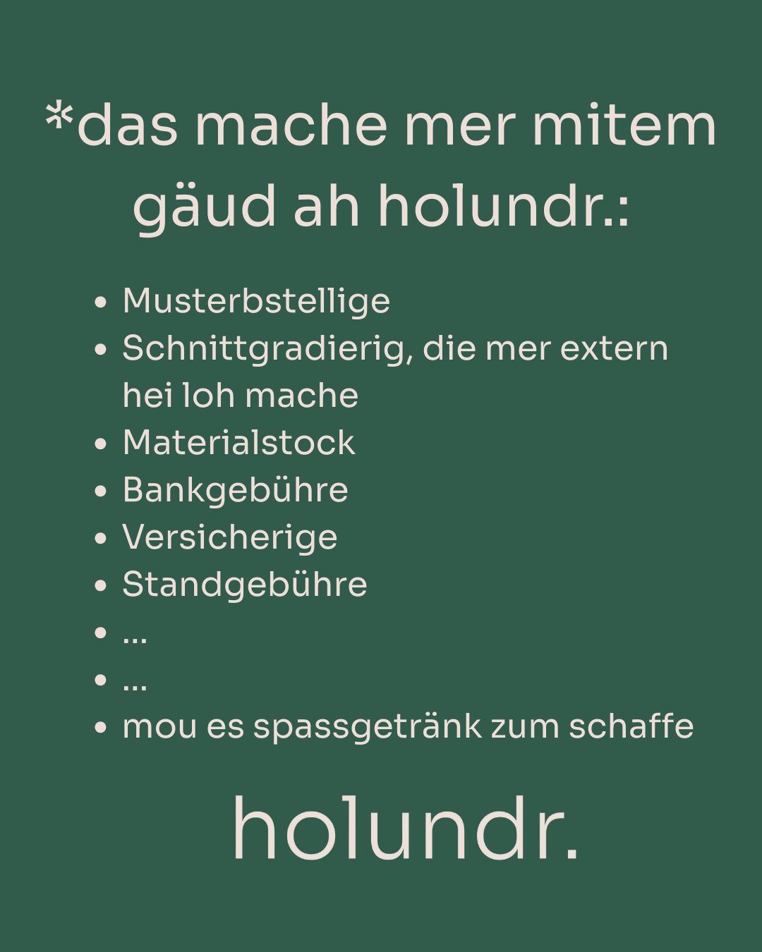 Demit nüt verpassisch, foug üs uf Insta @holundr oder mäud Di fürä Newsletter ah.